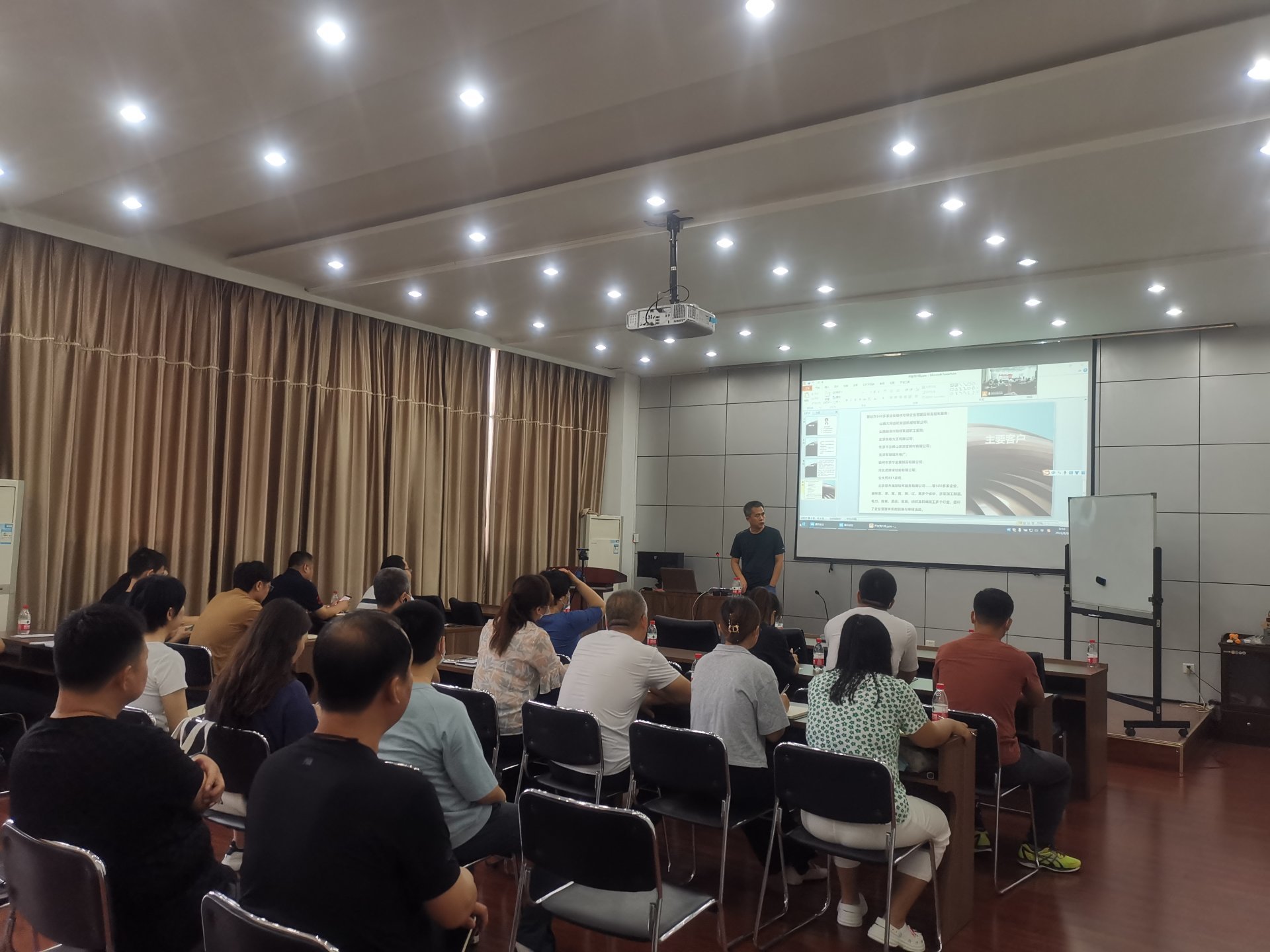 培訓(xùn)前物資質(zhì)量部部長曹國巍介紹了齊永合老師的工作履歷,以及大陸航星在企業(yè)管理模式設(shè)計(jì)、人力資源體系中薪酬和績效、營銷、生產(chǎn)管理、資本經(jīng)營等領(lǐng)域的成功培訓(xùn)經(jīng)驗(yàn)。